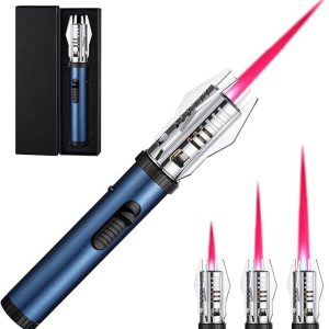 Jetflame Lighter Torch Lighter 20 cm Jet Flame Lighter Gas Refillable Windproof Long Stick Lighter for Candles, Kitchen, Barbecue, Camping (without Gas) (Blue)